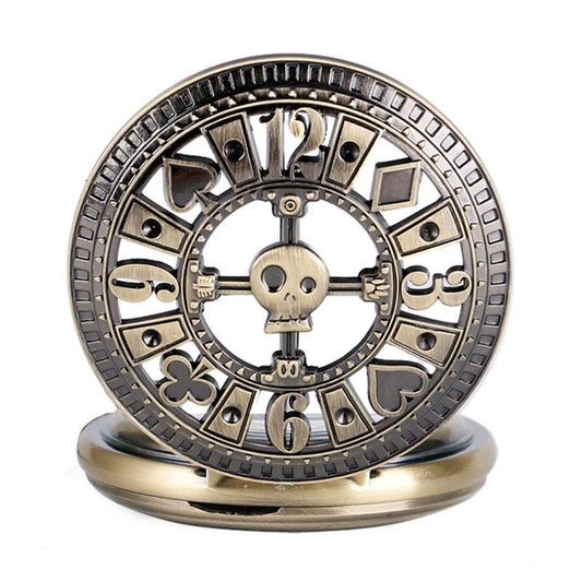 Skull and Poker Symbol Design on Black and Bronze Pocket Watch