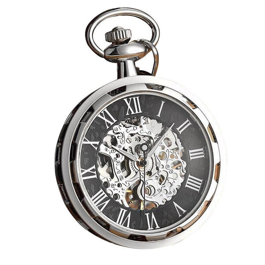 Classic Alloy Mechanical Pocket Watch in Black, Gold, and Silver
