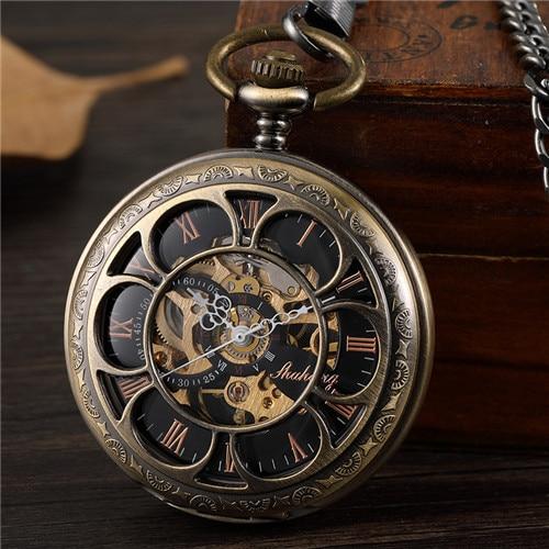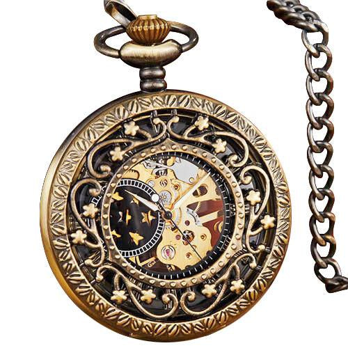Double-sided Bronze Pocket Watch with Intricate Carved Design