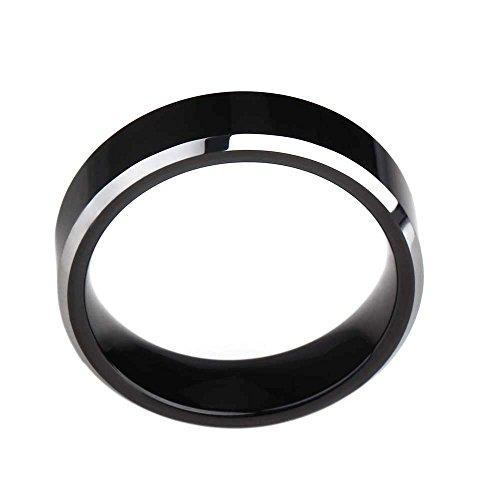 Black Titanium Rings Wedding Bands Comfort Fit Flat Two Silver Tone for Men Women