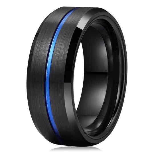 Blue & Black 8mm Men Tungsten Carbide Wedding Band Ring Brushed Comfort Fit