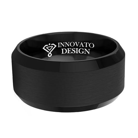 Men Black 12mm Tungsten Carbide Ring Cool Wedding Engagement Band Matte Finish Beveled Edge Comfort Fit