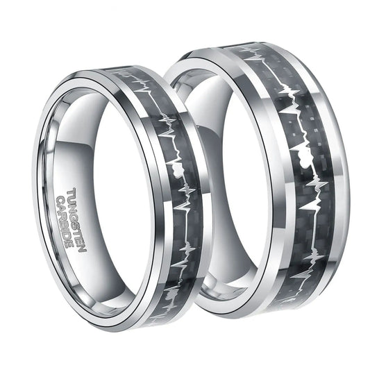 6mm/8mm Tungsten Rings Heartbeat Cardiogram Black Carbon Fiber Engagement Wedding Band