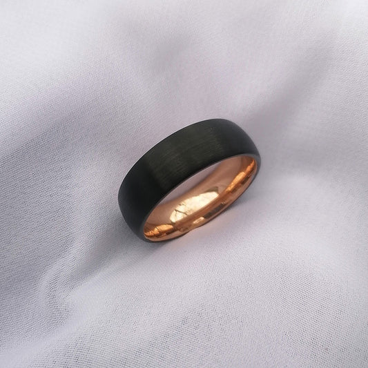 8mm Two Tone Brushed Black & Rose Gold Tungsten Ring