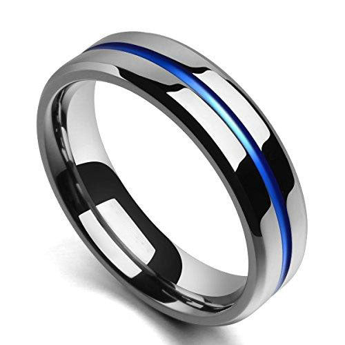 GENTLEMAN 8mm Blue Tungsten Carbide Ring Black Carbon Fiber Wedding Band Polished Finish Comfort Fit