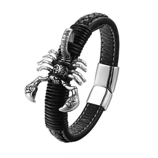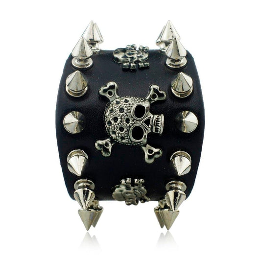 Unique Spikes Gothic Skull Wide Cuff Leather Bracelet