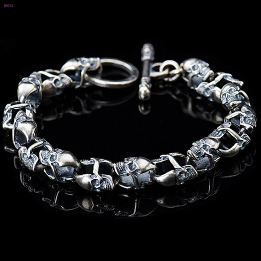 Large 925 Sterling Silver Skull Bracelet Link Chain for Men