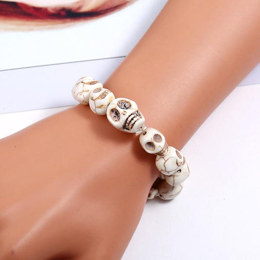 Natural Lava Stone Multicolor Beaded Skull Bracelet