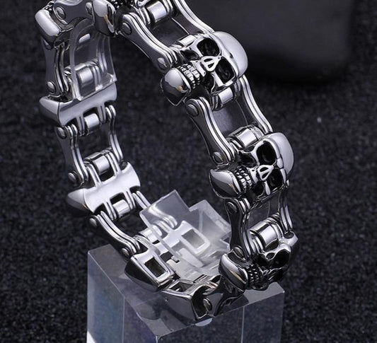 Men’s Stainless Steel Biker Skull Motorcycle Chain Bracelet