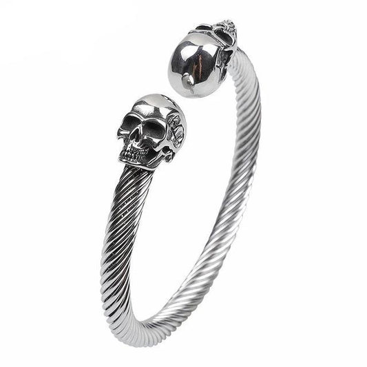 Black/Silver Stainless Steel Skull Bangle Bracelet