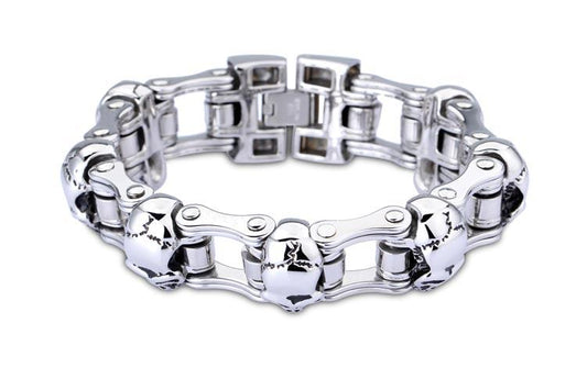 Men’s Stainless Steel Skull Biker Link Chain Bracelet