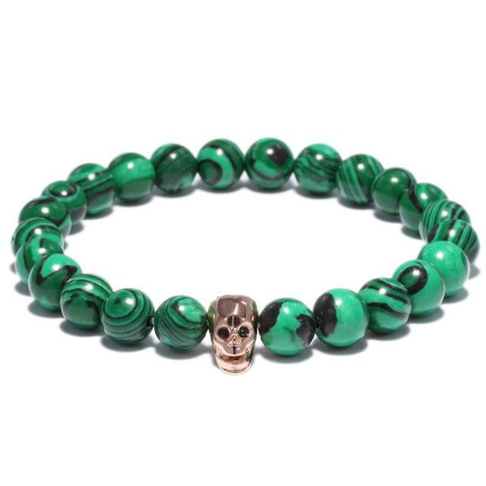 Lava Rock Stone Skull and Crown Beaded Bracelet