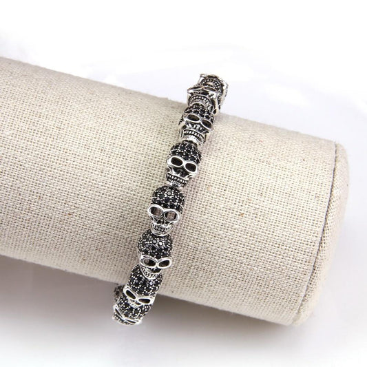925 Sterling Silver Skull with Black Cubic Zirconia Beads Bracelets