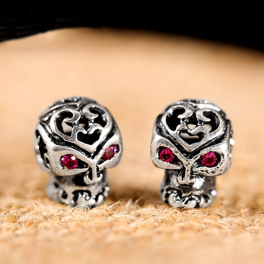 Skull with Cubic Zirconia Pink Eyes 925 Sterling Silver Vintage Hip-hop Punk Stud Earrings