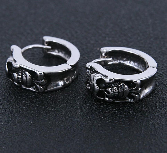 Men's Stainless Steel Black Skull Small Hoop Earrings
