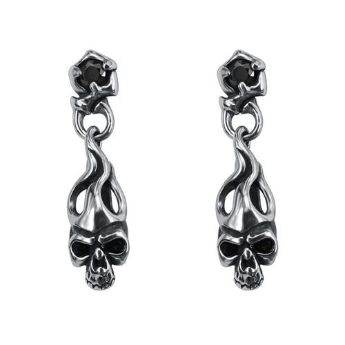 Dangling Skull and Cubic Zirconia Stainless Steel Punk Biker Stud Earrings