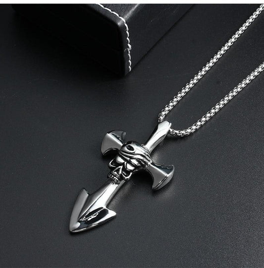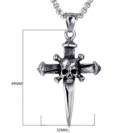 Gothic Stainless Steel Skull Cross Pendant and Chain Necklace