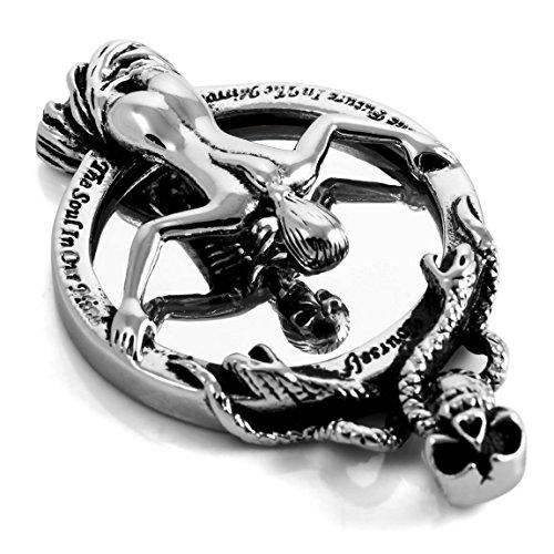 Men's Stainless Steel Pendant Necklace Girl Skull in Mirror