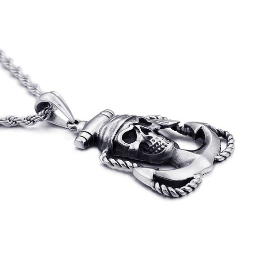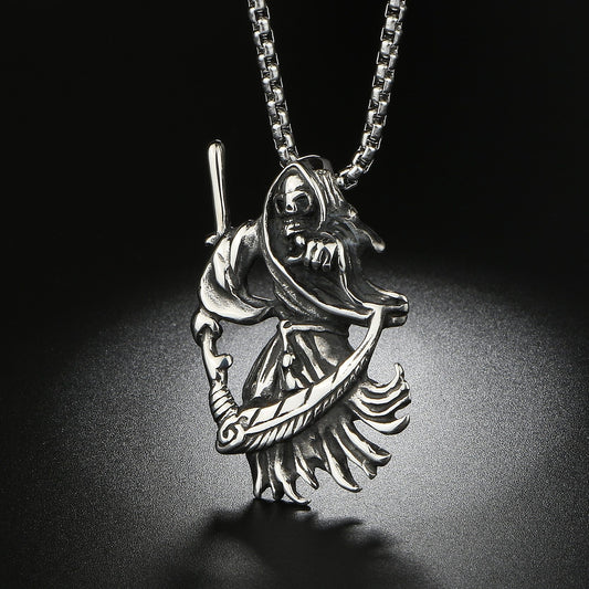 Stainless Steel Grim Reaper Pendant with Silver Chain Necklace
