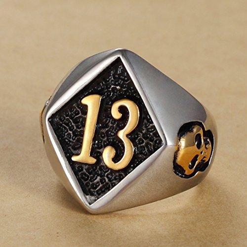Stainless Steel Punk Gothic Gold Tone Lucky No.13 Evil Skull Symbol Motorcycle Biker Epoxy Diamond Ring