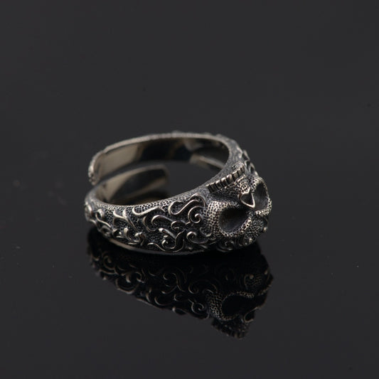 Gothic Silver Skull with Domineering Teeth 925 Sterling Silver Vintage Punk Rock Ring