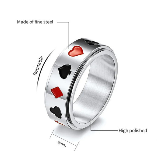 Men's Stainless Steel Silver Tone Card Rotatable Spinner Ring