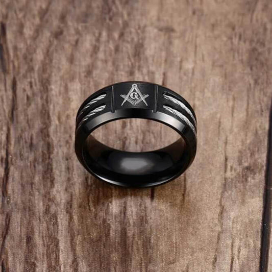 Men Black Titanium Masonic Ring with Wires Freemason Brother Gift