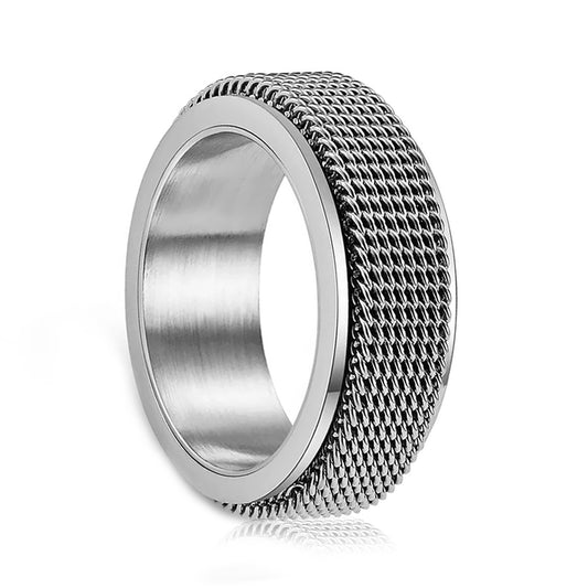 8mm Men's Silver/Black Cable Inlay Titanium Ring Wedding Band Screw Design