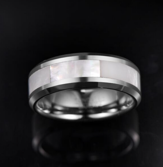 8mm Tungsten Mother of Pearl Inlay Wedding Band Ring For Men High Polish
