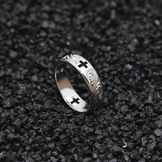 7mm Titanium Ring Hollow Cross Cut Out Hand Floral Design
