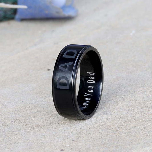 Men Black Titanium DAD Ring Engraved Love You Dad