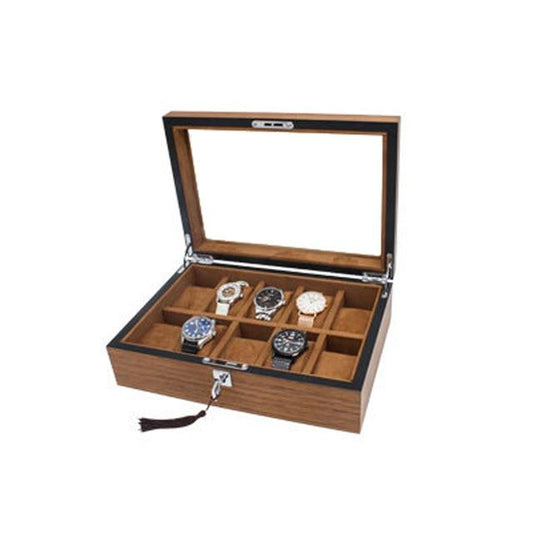 Brown Beech Wood Watch Display Box Organizer with 5, 8, 10 and 12 Slots