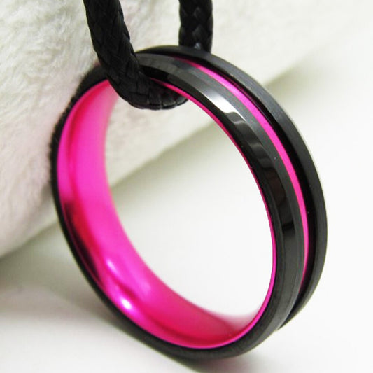 6mm Classic Black Beveled with Pink Inlay Tungsten Wedding Ring