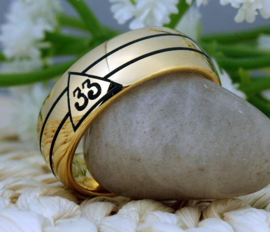 8mm Golden Domed 33rd Degree Masonic Tungsten Carbide Wedding Ring