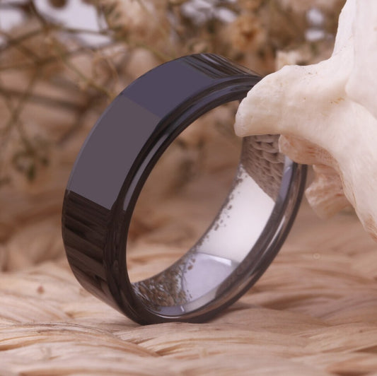 8mm Black Carbon Fiber and Bright Meteorite Inlay Tungsten Wedding Ring