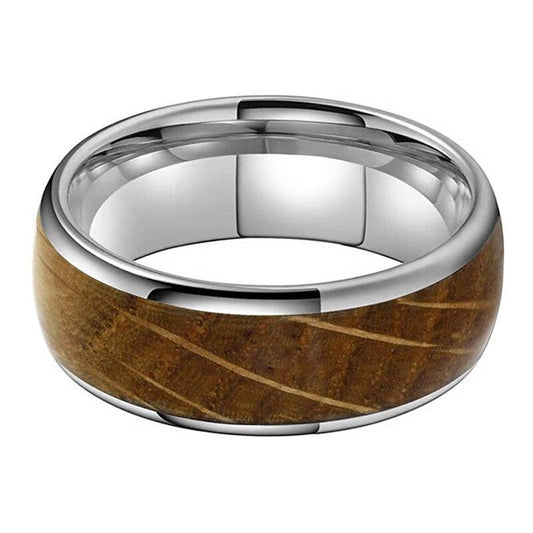 8mm Whiskey Barrel Oak Wood Inlay Dome Band Tungsten Wedding Ring