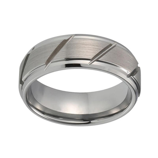 8mm Classic Multi-Grooved and Beveled Tungsten Carbide Wedding Band
