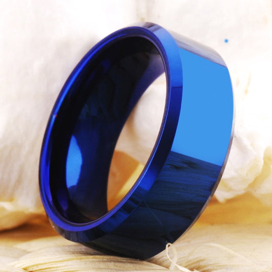 8mm Classic Blue Beveled Tungsten Wedding Ring