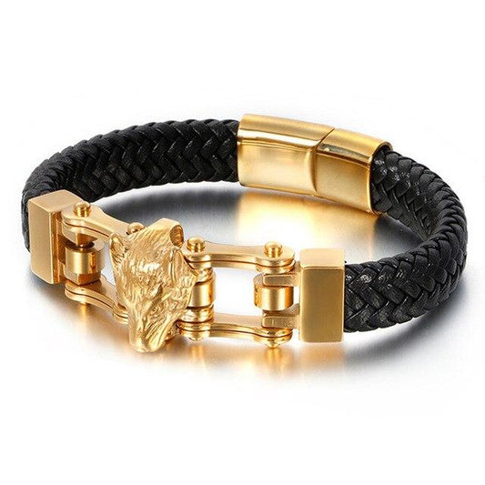 Punk Wolf Head Ornament Genuine Leather Bracelet