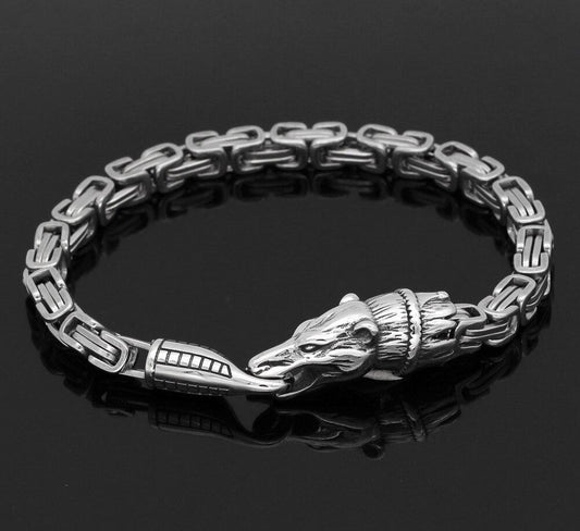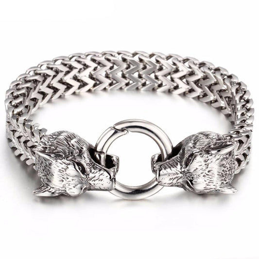 Norse Wolf Heads Viking Bracelet with Byzantine Chain
