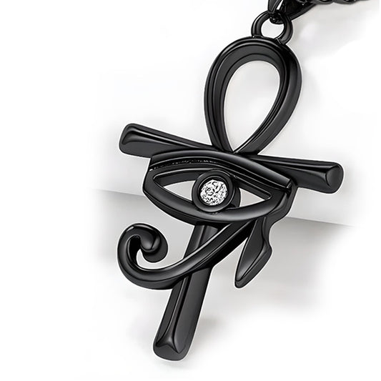 Egyptian Eye of Horus on Ankh Pendant Stainless Steel Chain Necklace