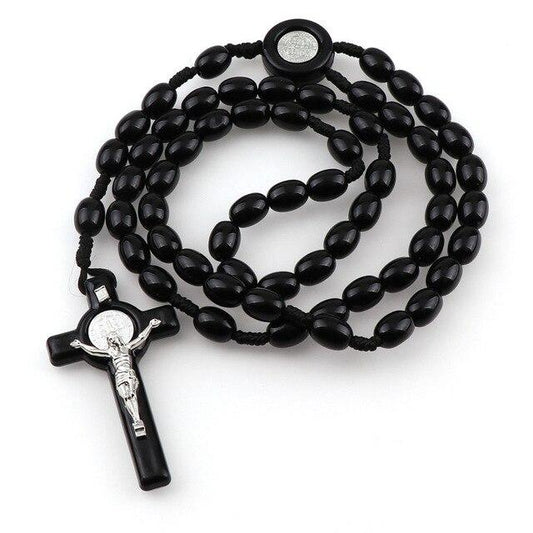 St. Benedict Jesus Cross Resin Beads Rosary Wooden Pendant Necklace