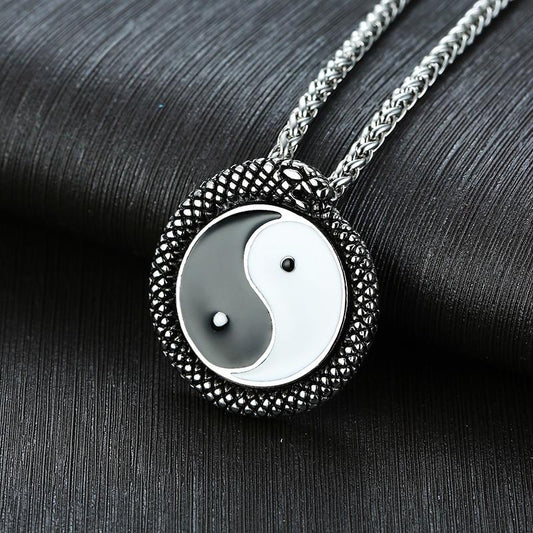 Stainless Steel Yin and Yang Dragon Pendant Necklace