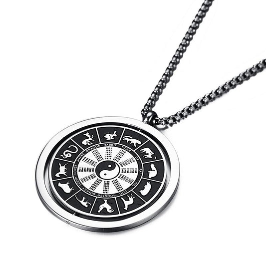 Tai Chi Yin and Yang Zodiac Stainless Steel Rotatable Necklace