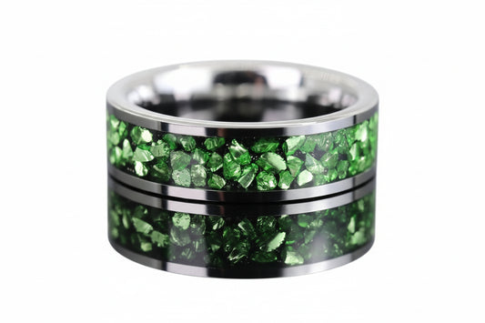 6mm Dual Black and Green Emerald Inlay Tungsten Carbide Ring