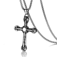 Gothic Silver or Gold Stainless Steel Cross Pendant and Chain Necklace