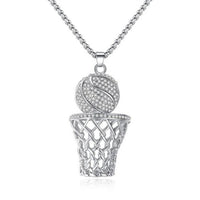 Sterling Silver Crystal Basketball Hoop Pendant Necklace