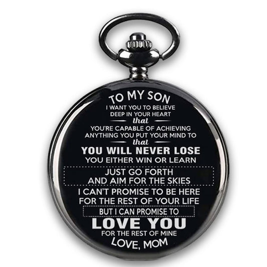 "To My Son Love Mom" Quartz Necklace Chain Pendant Pocket Watch