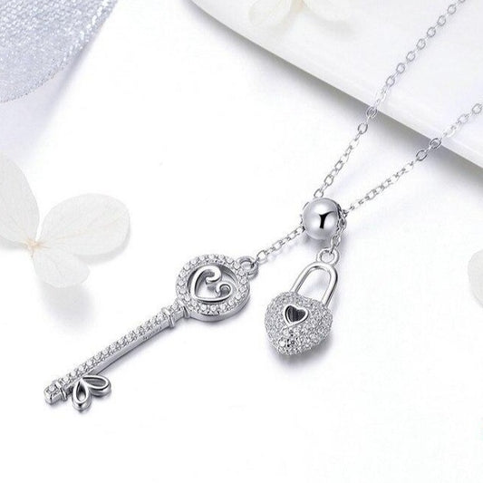 "The Key of Heart Lock" 925 Sterling Silver Fashion Pendant Necklace
