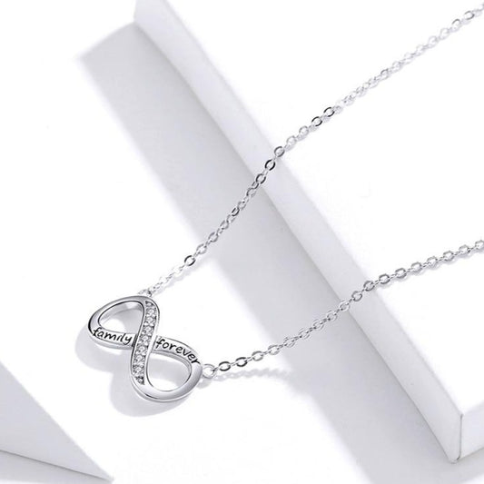 "Family Forever" Cubic Zirconia Infinity Design 925 Sterling Silver Fashion Pendant Necklace